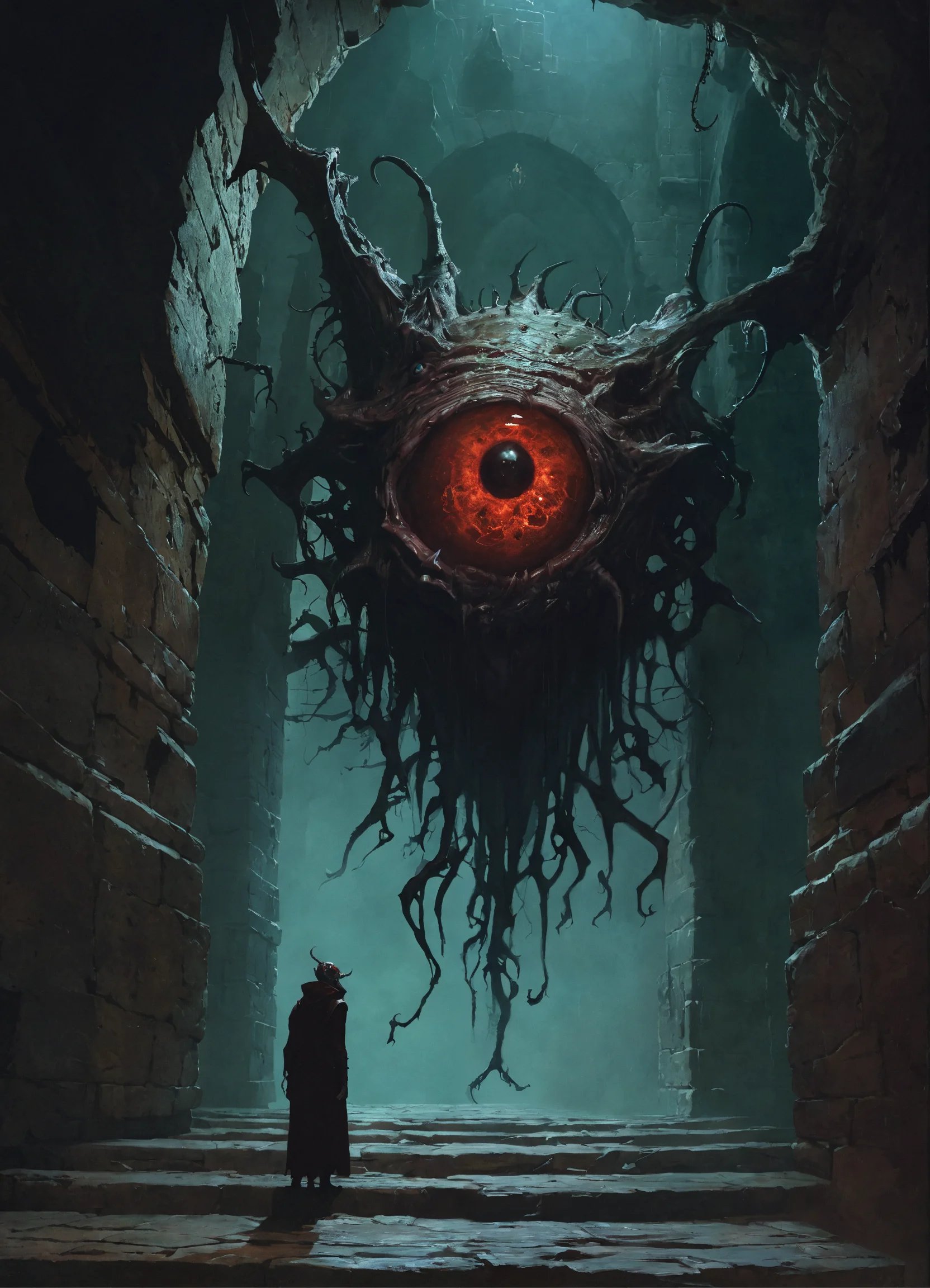 In the ancient halls of an old castle floats the Malevolent Eye, a giant, diabolical red eye that sees all. This sinister entity is the mastermind behind an empire of evil, ever-vigilant and all-knowing. The Malevolent Eye’s presence instills fear in all who enter its domain, for nothing escapes its unblinking gaze. It commands its minions with unrivaled cunning, orchestrating dark deeds from the shadows. Those who dare to challenge its rule find themselves under the relentless watch of the Malevolent Eye.