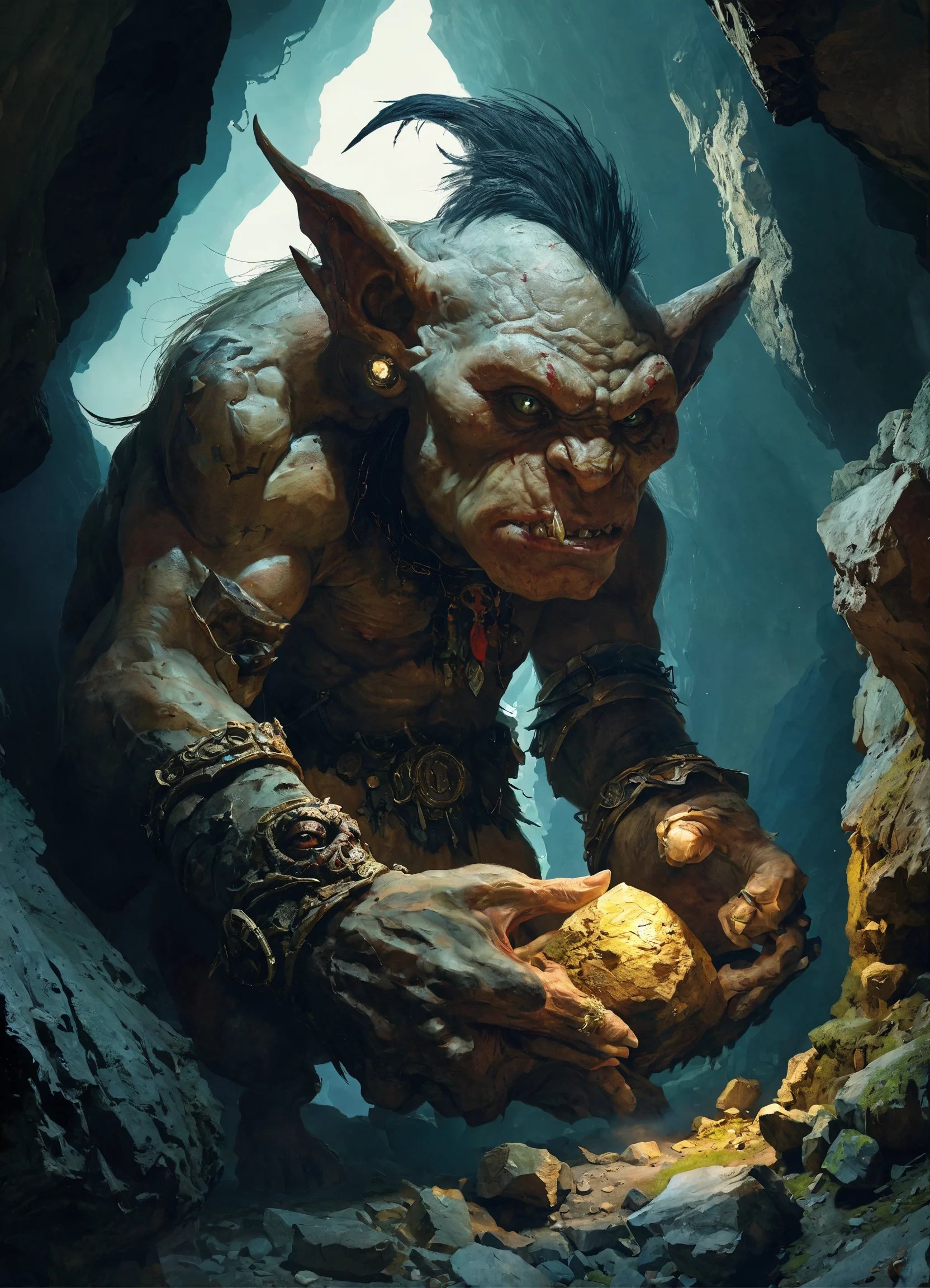 Deep within the shadowy confines of a cavernous lair resides Gorgath the Hoarder, a massive orc with a fierce dedication to his vast collection of golden treasures. Gorgath’s towering frame and ferocious demeanor make him an unstoppable guardian of his hoard. Intruders beware—those who dare to venture into his domain rarely escape the wrath of this gold-obsessed beast. Gorgath’s cave is filled with untold riches, but the price of greed is often too high.