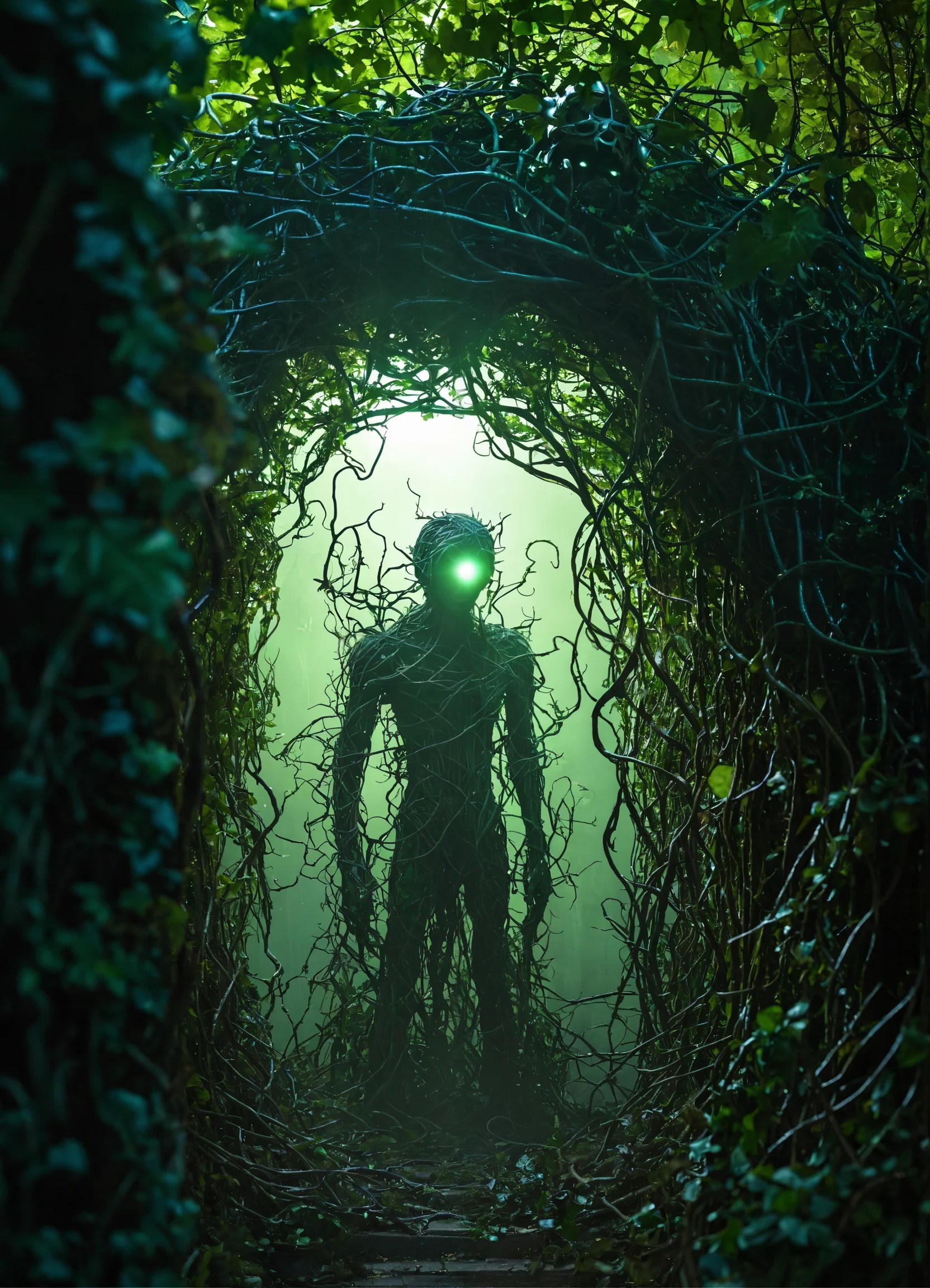 In the depths of a dark, ancient forest stands the Verdant Sentinel, a towering humanoid formed from the twisted roots of ancient plants. This guardian of the forest has a single, glowing green eye at the center of its face, radiating an eerie light that pierces the gloom. The Verdant Sentinel is a silent, relentless protector, ready to unleash nature’s fury on any who harm its domain. Its massive roots can entomb intruders in an instant, making it a formidable foe for any who disrespect the natural order. Beware the forest’s wrath, for the Verdant Sentinel’s power is both ancient and unforgiving.