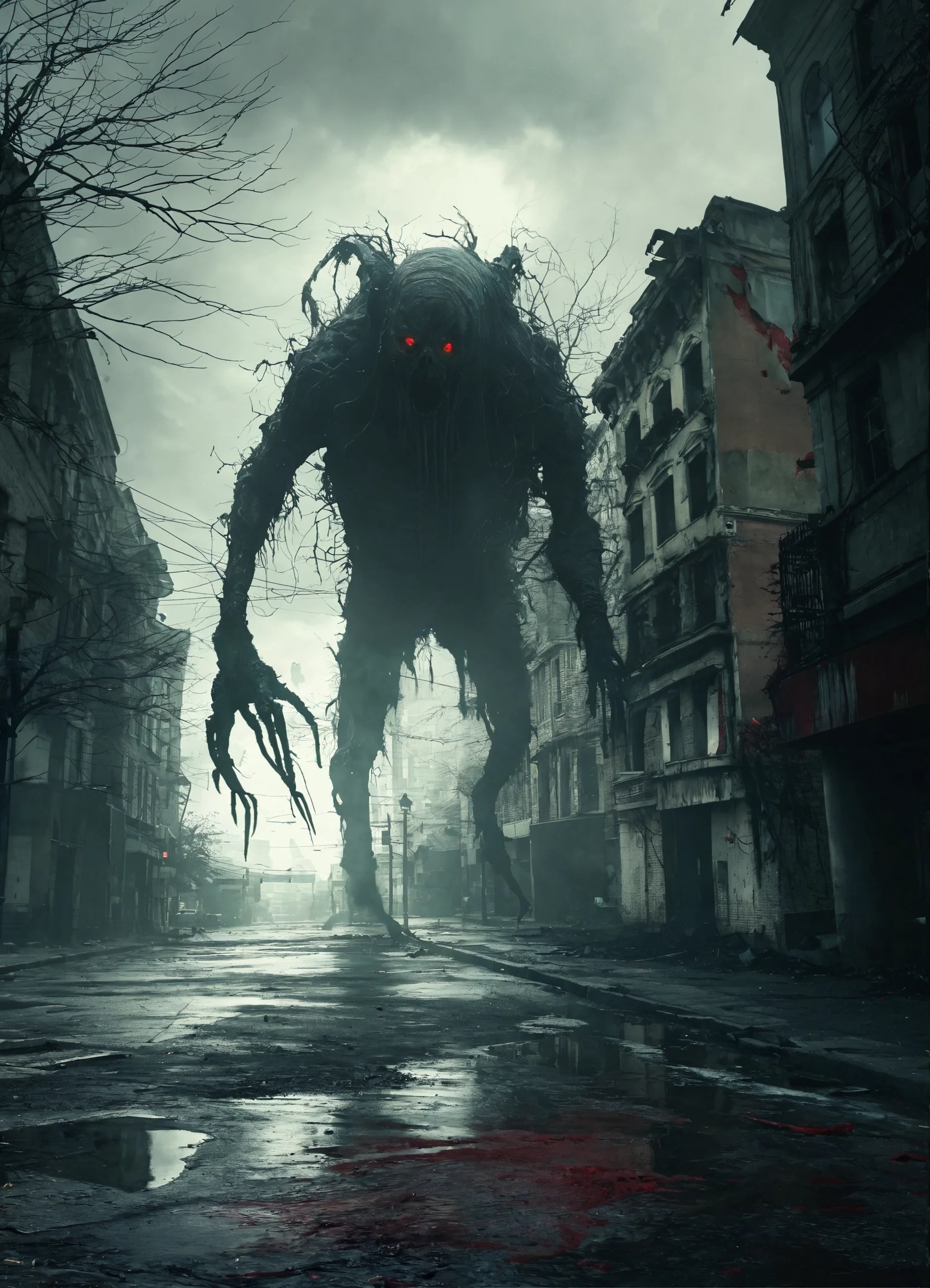 Behavior: The Shadow Titan is a relentless hunter, moving silently through the ruins. Its mere presence instills terror, and its attacks are brutal and unforgiving. It seeks out any survivors, driven by a need to eradicate all remnants of humanity from its domain.