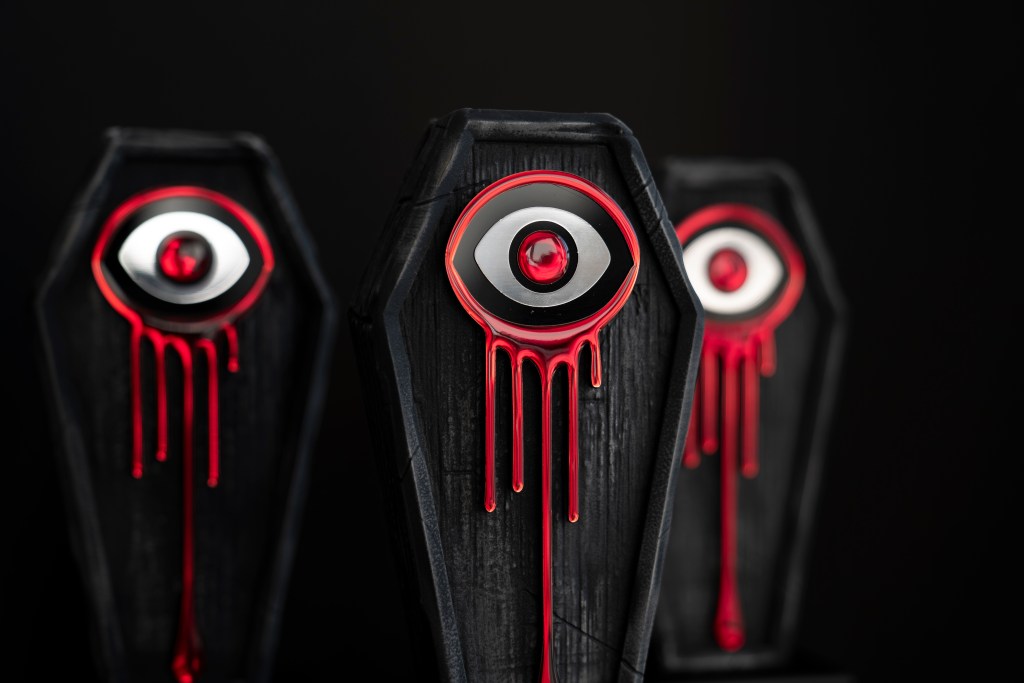 Each Sinister Award is uniquely made through a meticulous process. It begins as a hand-drawn sketch, then evolves into a digital 3D sculpt. The coffin is printed in high-definition resin, molded in silicone, and reinforced with fiberglass. The base and nameplate—crafted from stainless steel and mirror-finished aluminum—are sanded, painted, and polished with obsessive care. The eye’s blood effect and final assembly are done by hand, ensuring no two awards are exactly alike.