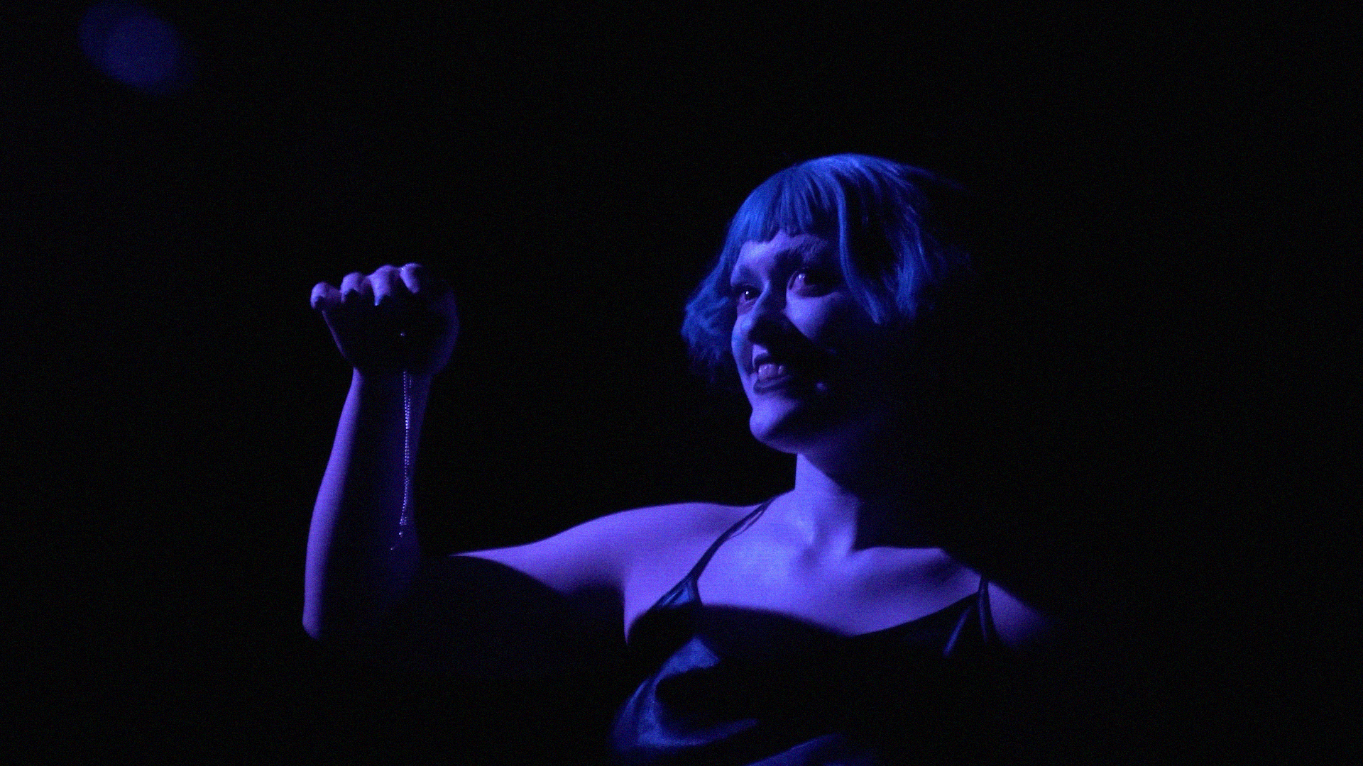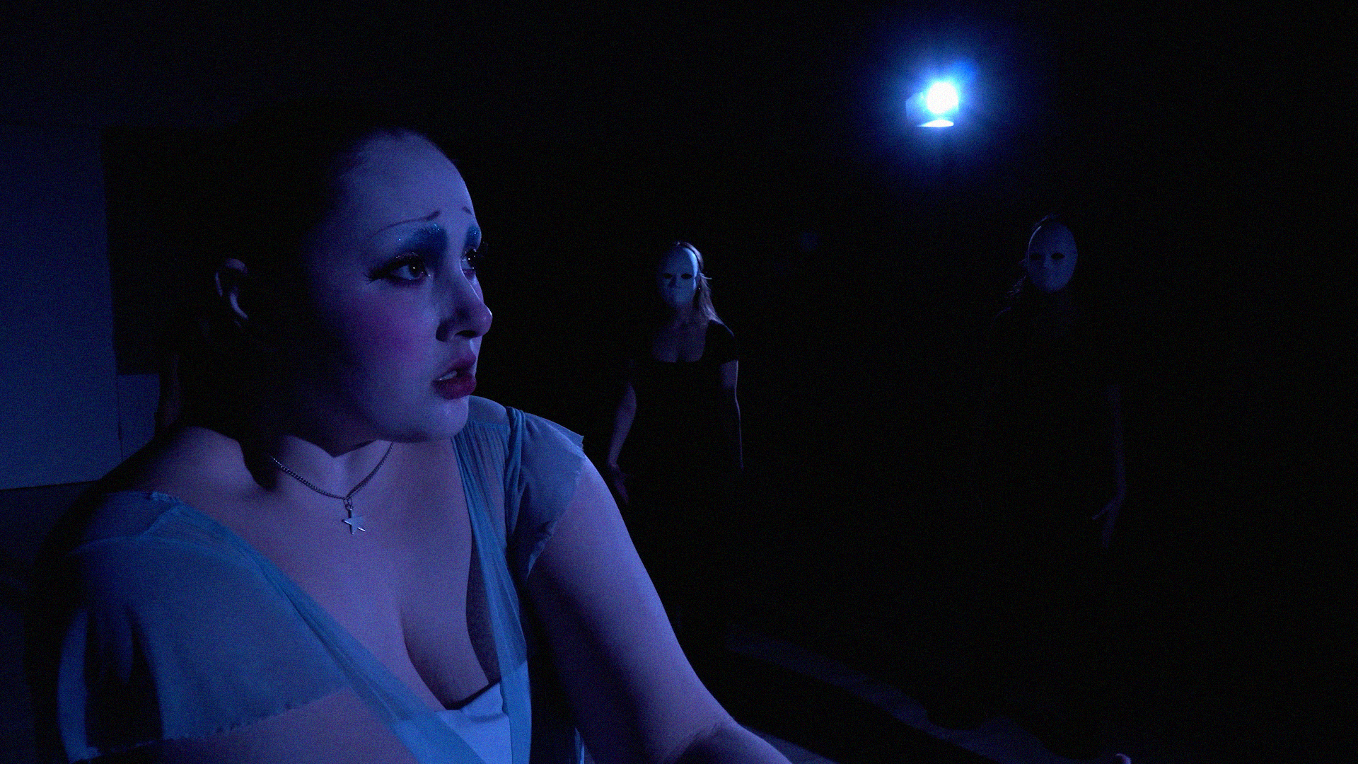 For Kally, music and visuals are deeply intertwined. She doesn’t become attached to a song unless she has a clear visual connection to it. In Darkstar, the focus was on creating distinct visual aesthetics for the protagonist, Mia, and the antagonist, Mx. Fame. The color blue became a key element in marking the transition into Mx. Fame’s surreal world, helping to visually separate reality from the character’s fame-driven dimension.